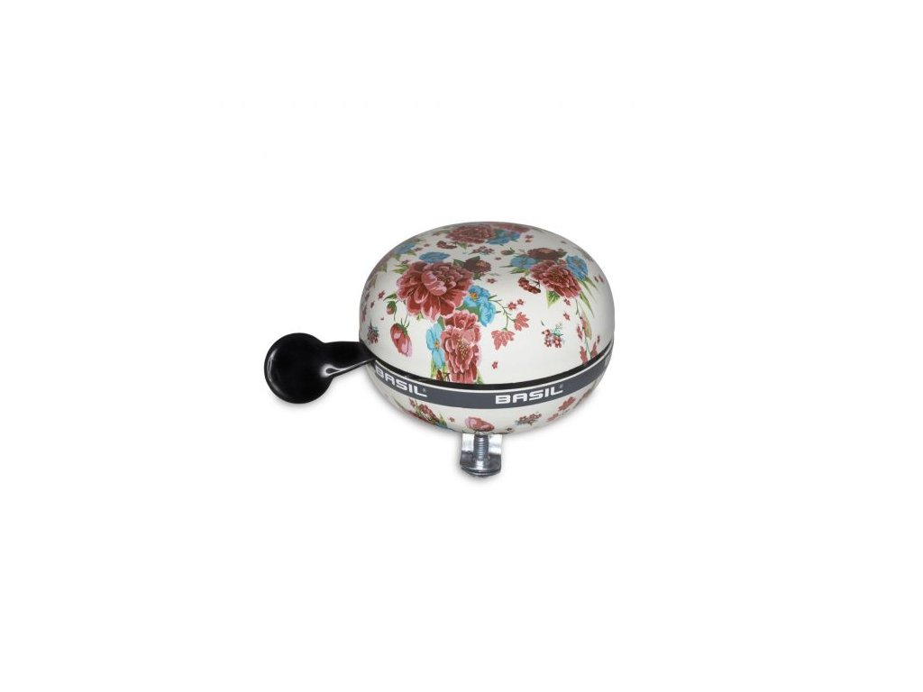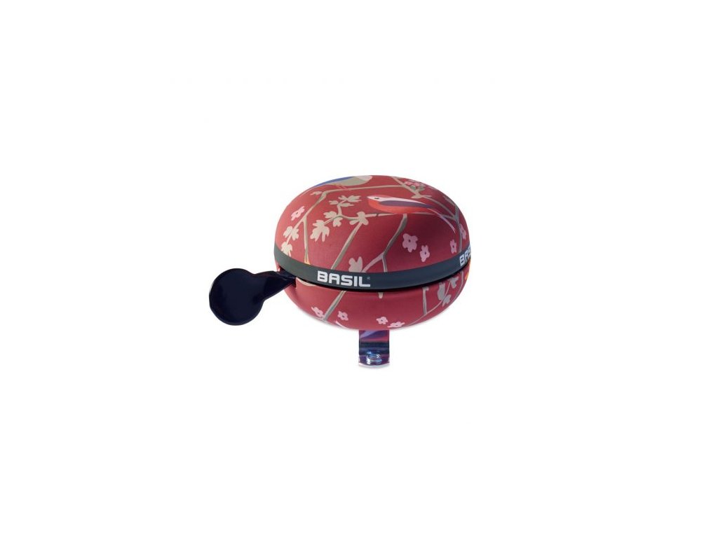 Klasický velký celokovový zvonek Basil Průměr: 80 mm Barva: červená s květy Materiál: ocel Zvuk: hlasitý a jasný Hmotnost: 250 g Objímka: 22,2 - 25,8 mm Balení: karta Basil